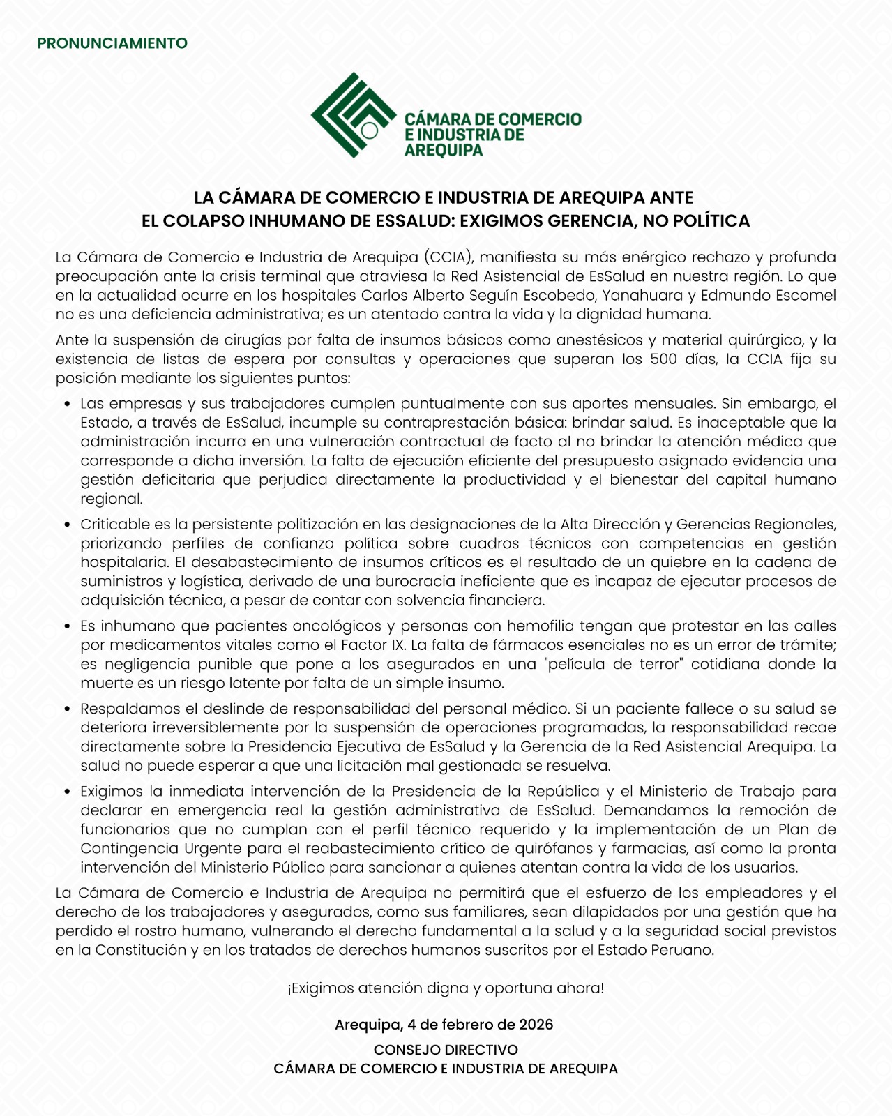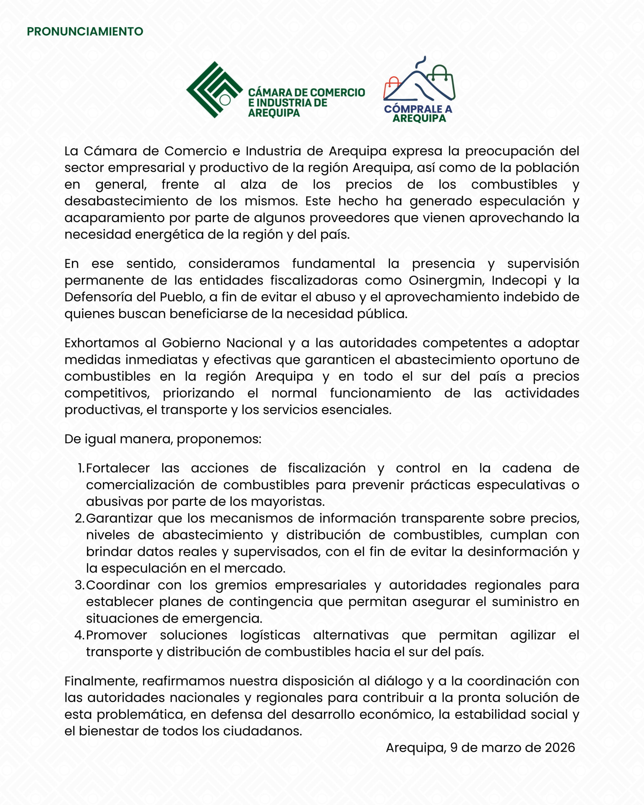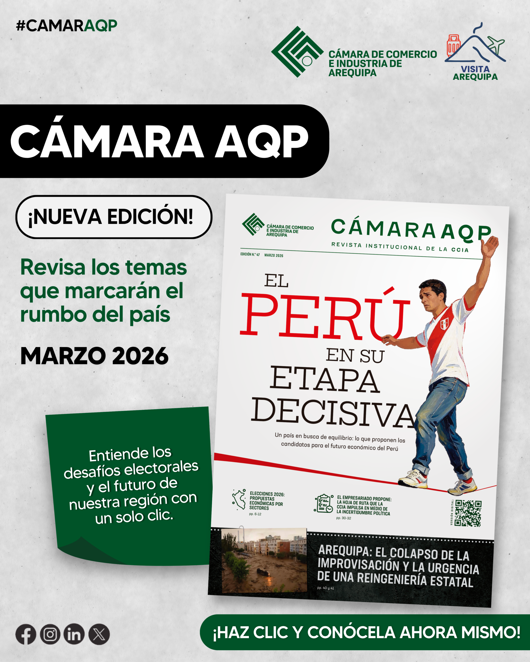Trabajamos en el incremento de la competitividad entre empresas, representándolos, defendiendo sus intereses gremiales e impulsando su crecimiento y en consecuencia el desarrollo de Arequipa.